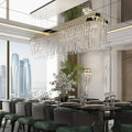 The myth is shaped into a luxury lighting suspension and presented in every handmade crystal glass. The rectangular gold-plated brass levels conceive an exclusive pattern of lighting refraction and create fantastical shades on their surroundings. Designed to brighten a contemporary space with the most elegant presence.