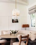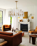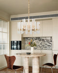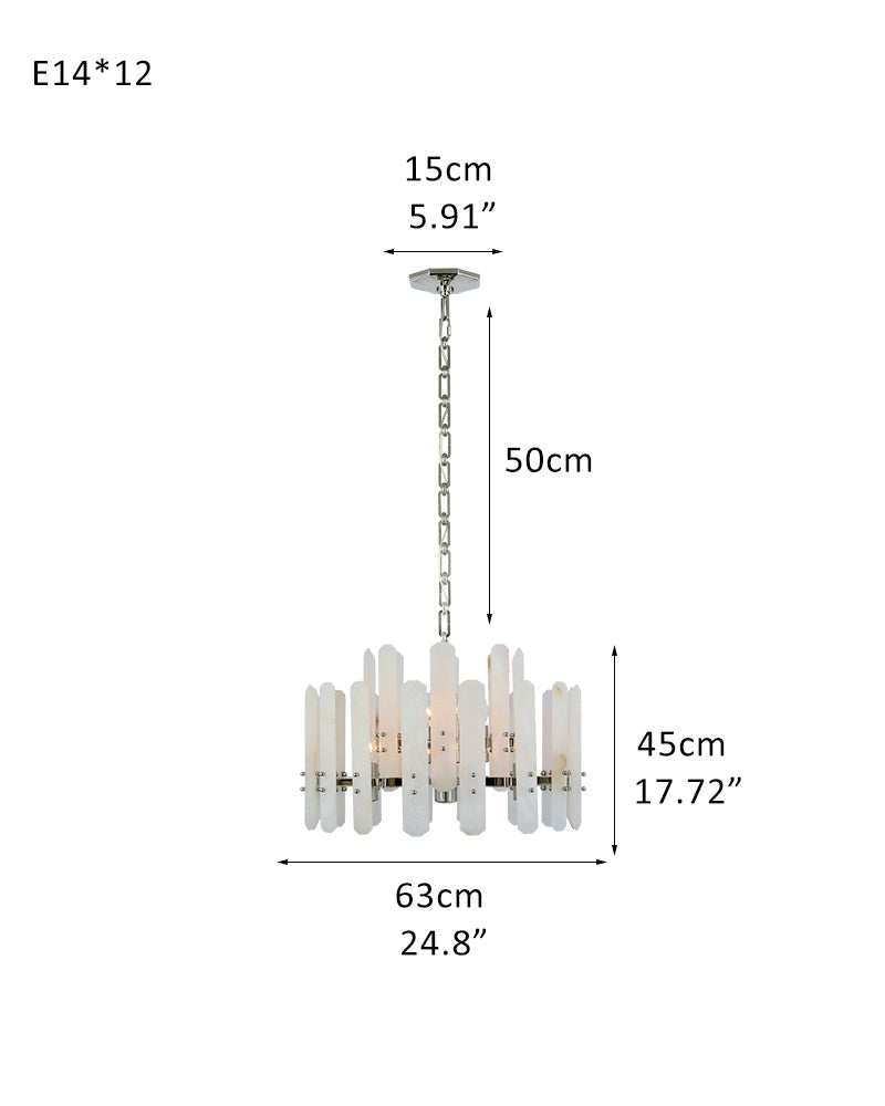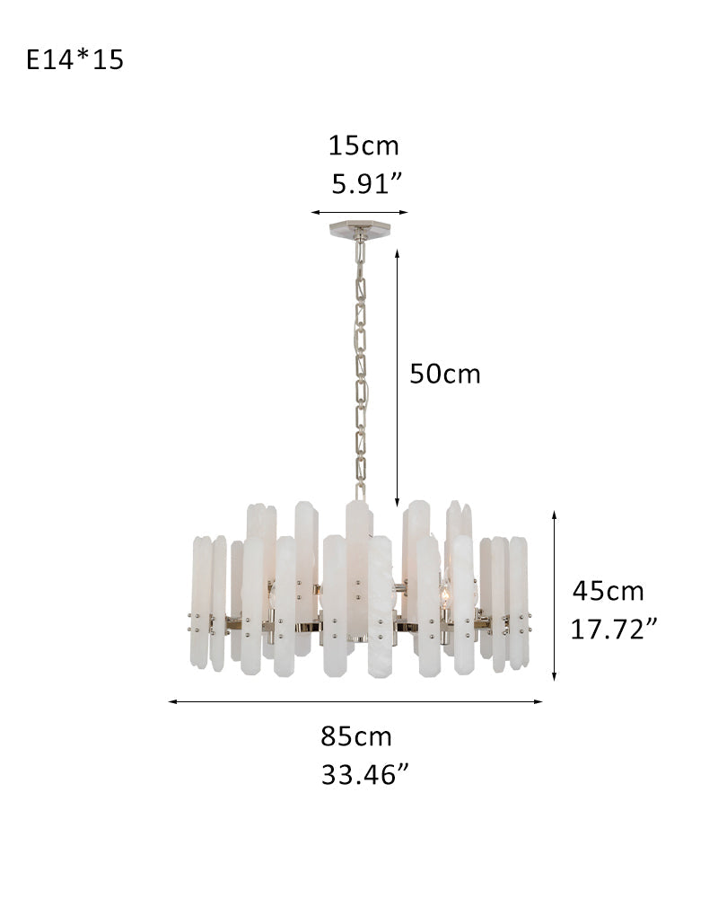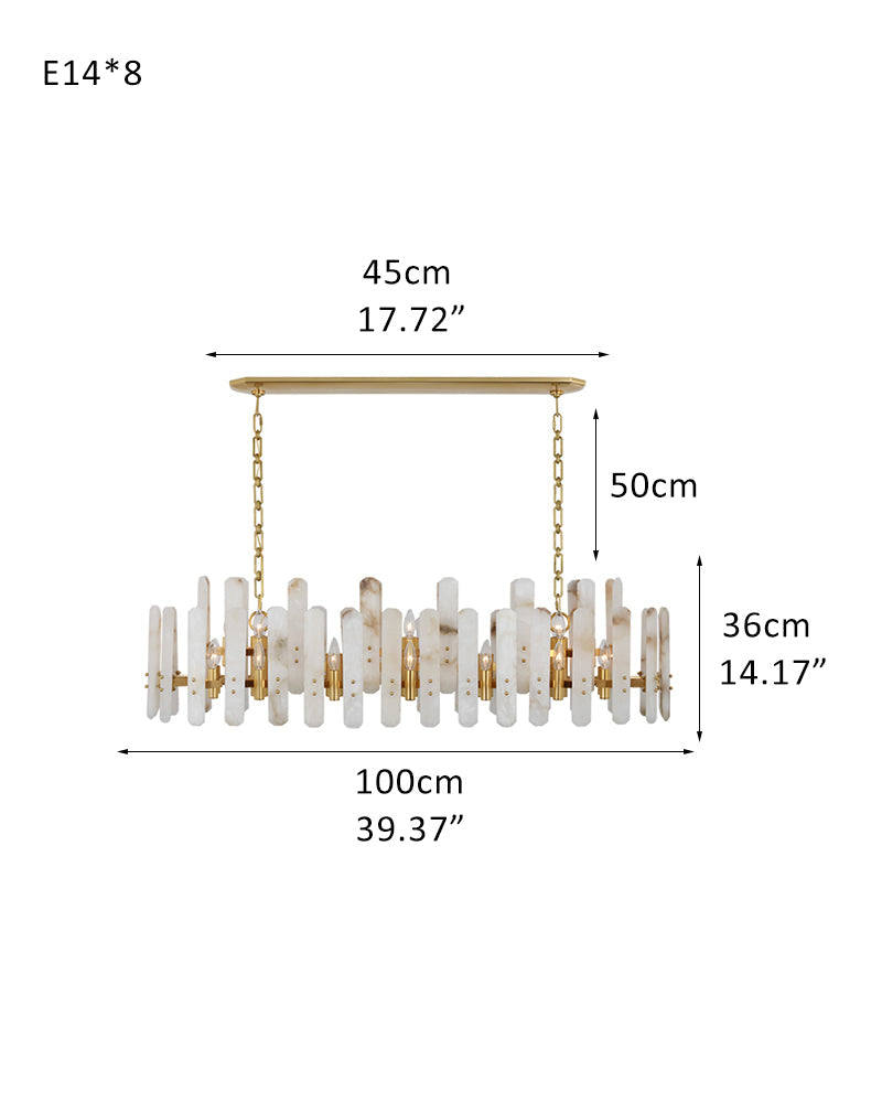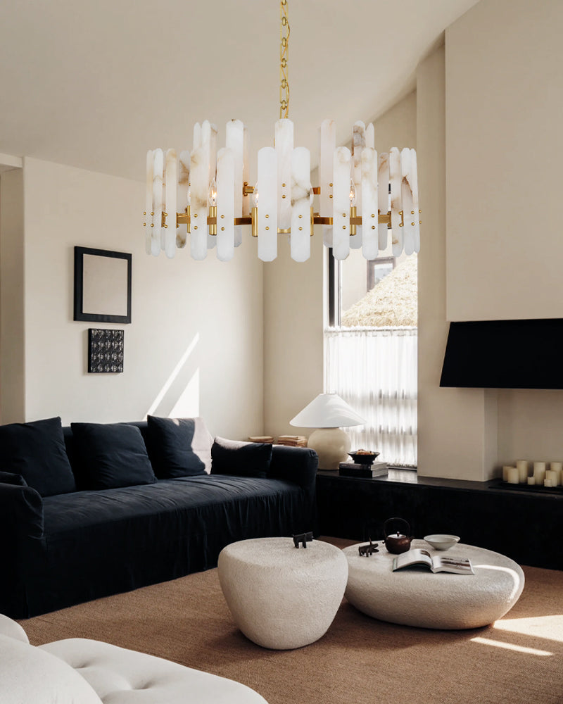 The material of alabaster is marble and copper. Elevate your space with this elegantly crafted chandelier, blending minimalist modern design with timeless sophistication. Perfect for living rooms, dining areas, or entryways, it harmonizes functionality and artistry.