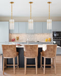 - Durable alabaster diffuses light; brushed metal adds refined contrast.