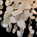 This modern branch chandelier is made of brass and glass,The brass branches are all twisted and shaped by hand, to form a natural and organic look, decorated by the beautiful little coin shape glass. It is very suitable for the dining and kitchen area.
