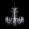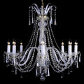 This elegant 8 arm chandelier has the body and arms hand-made from the finest Bohemian crystal glass. It is beautifully adorned with hand-cut, lead crystal trimmings. Metal parts, available in gold or silver finish, are coated with baked enamel lacquer to protect and maintain their appearance.