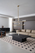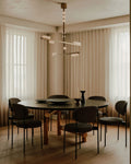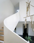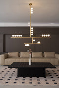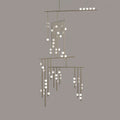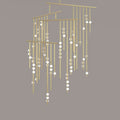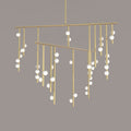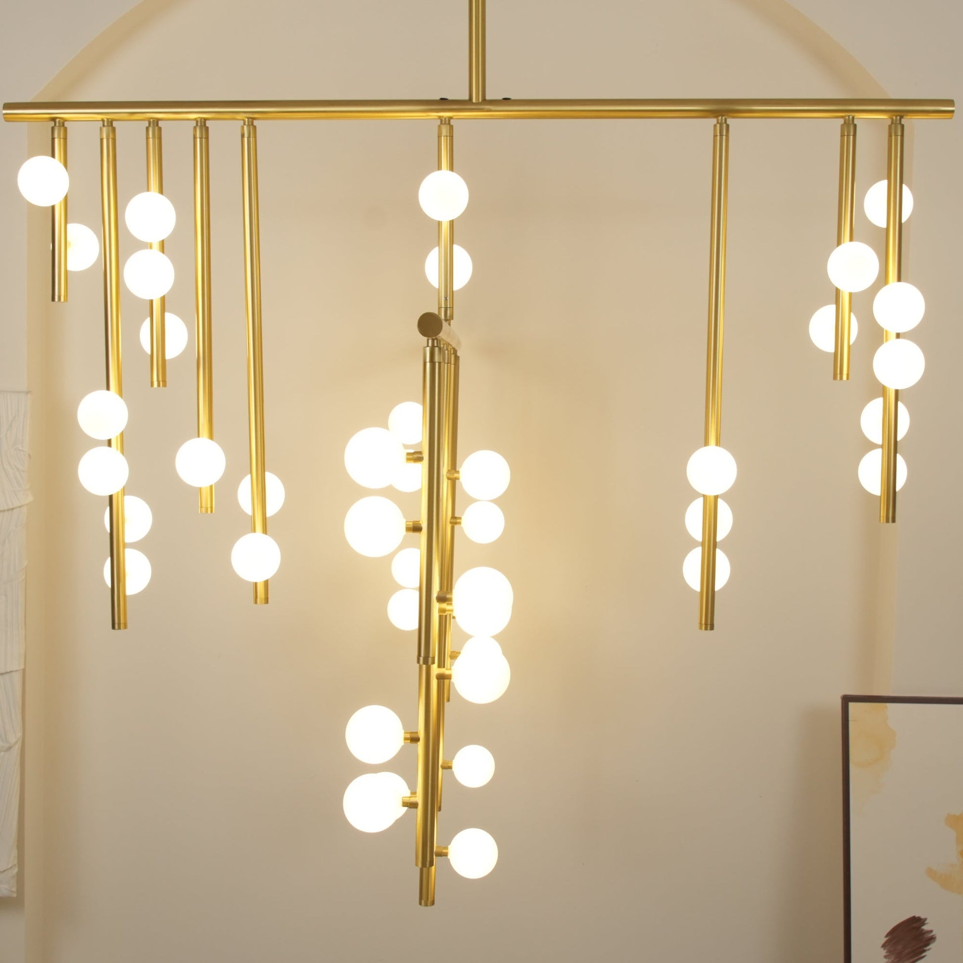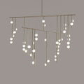 Brass Glass Drop Chandelier is an elegant fusion of form and function, featuring flexible joints that allow its slender rods to gracefully tilt, capturing the essence of organic movement. Adorned with delicate blown glass orbs reminiscent of pearls, and available in finishes like brushed brass and tarnished nickel, this chandelier brings a touch of natural sophistication to any space.