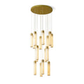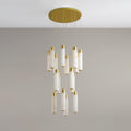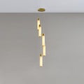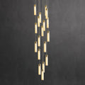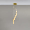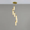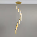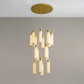 The Celestial Alabaster Cascade Chandelier is a symphony of light, form, and exquisite materials, designed to add an air of sophistication to any space. This chandelier features an array of cylindrical alabaster shades suspended at varying heights, each emitting a soft, natural glow that highlights the unique veining and translucent quality of the stone.