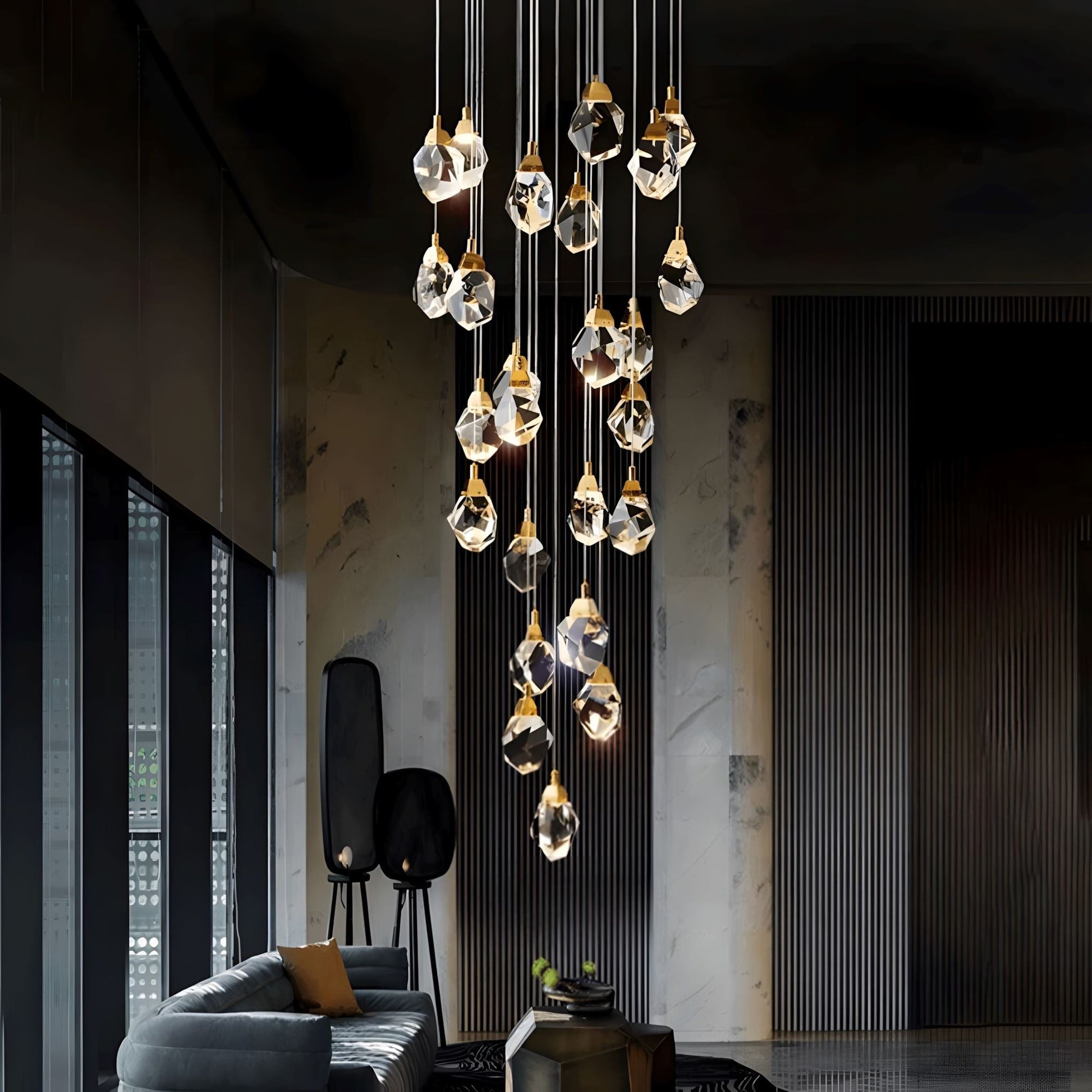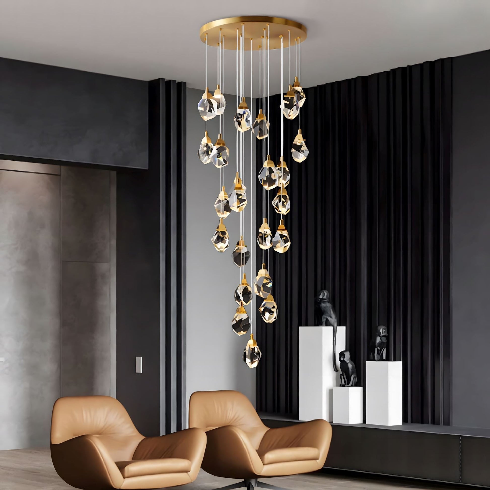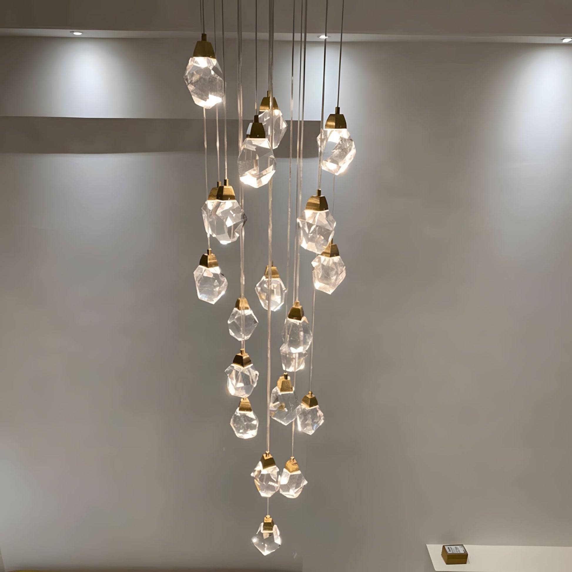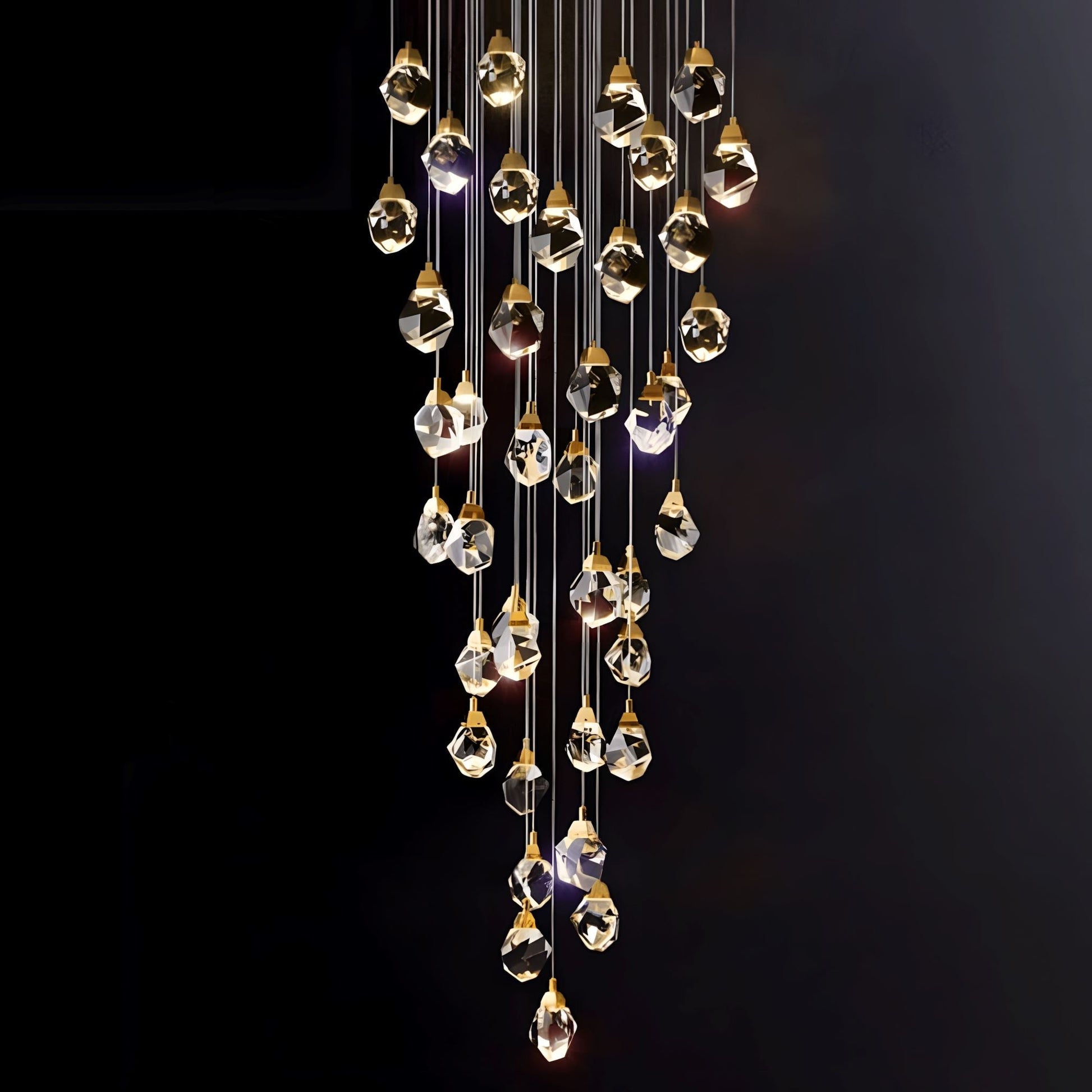 Get ready to be mesmerized by the stunning Crystal Rock chandelier, designed to captivate and evoke elegance. Perfect for any space, from grand staircases to chic lofts, this chandelier is crafted from authentic K9 crystals and top-quality stainless steel, making it a true masterpiece.