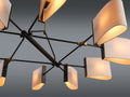 The Dessay Circular Chandelier is machined from solid brass. All parts are hand polished and patina’d. The shades are made from ivory silk.
