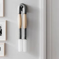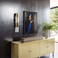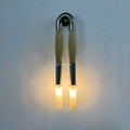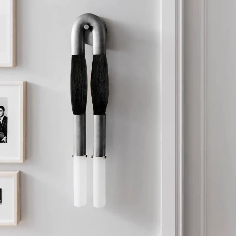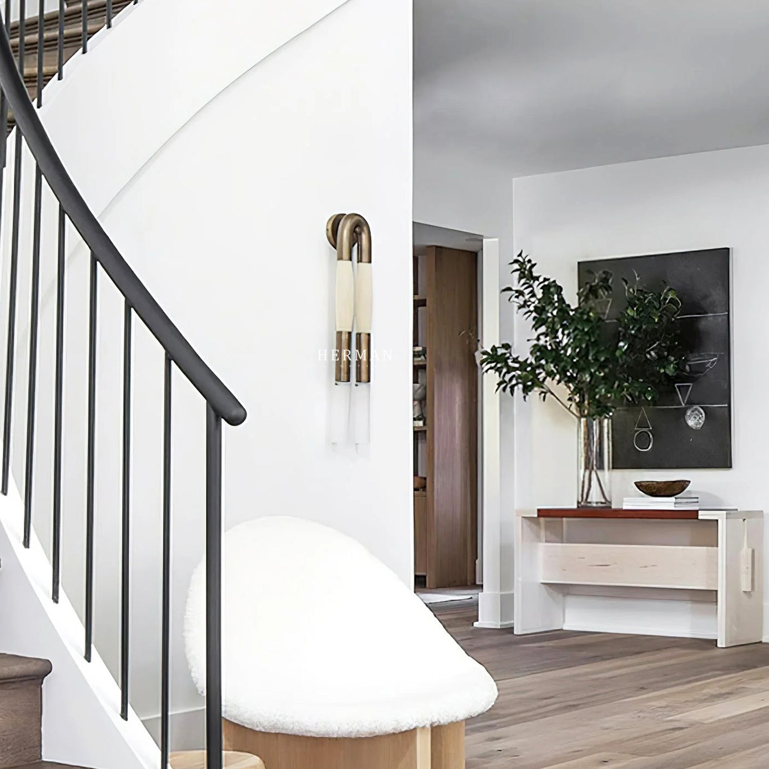 A thorough study of materials evokes the elegance and strength of the tassel. The weft of the tassel, combined with metal and etched glass, hints at the structural and load-bearing function of the thick thread.
