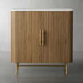 The Arden Bar Cabinet combines refined craftsmanship with thoughtful functionality, making it a sculptural focal point for entertaining spaces. Built from hand-finished Finnish pine or white oak, the cabinet features the collection’s signature reeded oak detailing and is topped with your choice of Carrara, White Marble, or Bluestone for a sophisticated contrast. Behind the elegant exterior, the interior offers dedicated storage for wine bottles, glassware, and bar tools, making it as practical as it is beautiful. Whether styled in a dining room, lounge, or open-plan living space, the Arden Bar Cabinet elevates the art of hosting with timeless materiality and everyday ease.