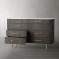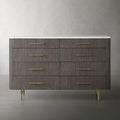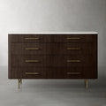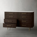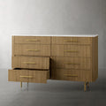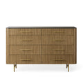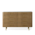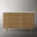 The Arden Eight-Drawer Dresser offers generous storage and timeless style, making it a standout anchor piece for the bedroom. Crafted from hand-finished Finnish pine or white oak, the dresser features the collection’s signature reeded oak detailing and is topped with your choice of Carrara, White Marble, or Bluestone for a refined natural contrast. Eight spacious drawers provide organized storage for clothing and essentials, while brass-finished zinc-alloy hardware and a plinth base lend a grounded, architectural presence. Thoughtfully designed and impeccably crafted, the Arden Dresser elevates any bedroom with its balance of utility and elegance.