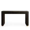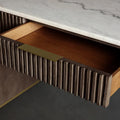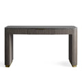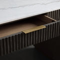- The center drawer is fitted with zinc-alloy finger pull hardware in a light brass finish, offering a refined accent.