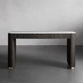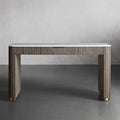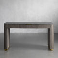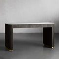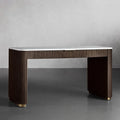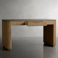 The Arden Writing Desk brings refined materiality and sculptural form to your workspace. Crafted from hand-finished Finnish pine or white oak, the desk is accented with reeded oak detailing and grounded by a zinc-alloy base with a light brass finish. A stone top—available in Carrara, White Marble, or Bluestone—adds a layer of natural elegance and durability. Whether placed in a home office or creative studio, the Arden Writing Desk blends timeless design with everyday function, making it a centerpiece for focus, clarity, and elevated style.