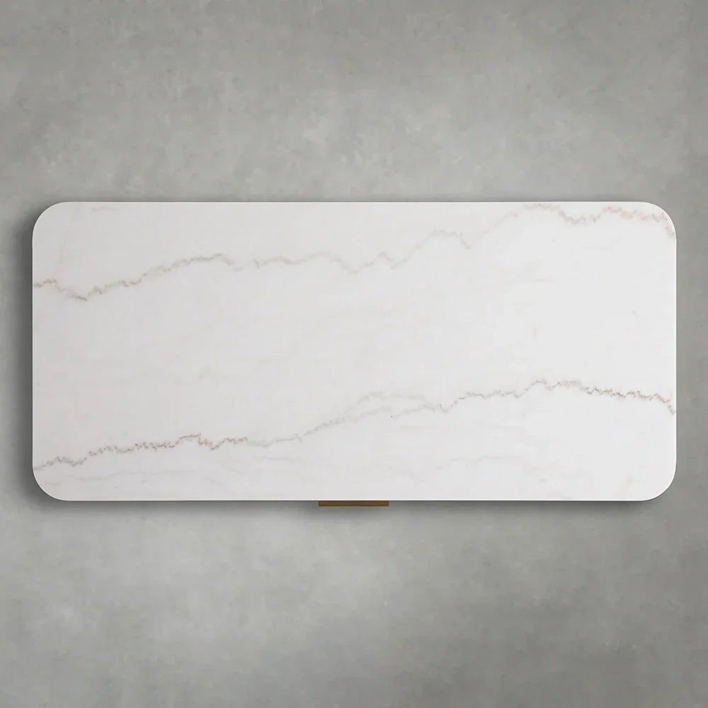 - Each craftsman-built piece features reinforced mortise-and-tenon joinery for enhanced strength and lasting stability, and is topped with your choice of white marble or bluestone for a timeless, elevated finish.