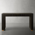 - Reeded wood surfaces are hand-stained and sealed with a protective lacquer coating, providing a soft sheen that enhances the natural grain.