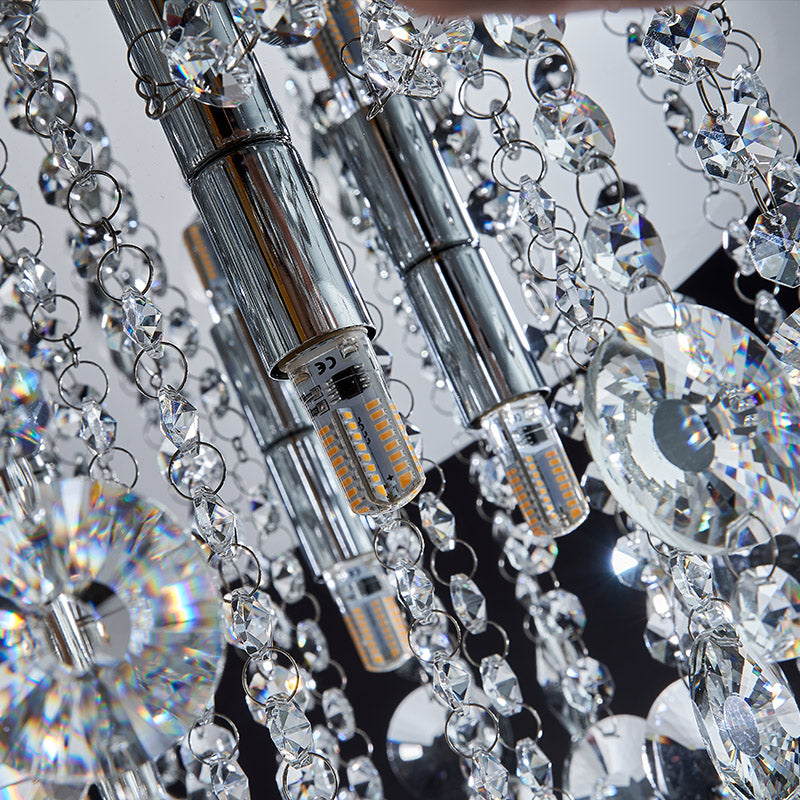 the ultimate in crystal beauty. Chrome-plated frames trimmed with K9 crystals. The K9 crystals are connected with nickel clips, the crystals are shining, attractive. It is really a great choice for living and bedroom area.