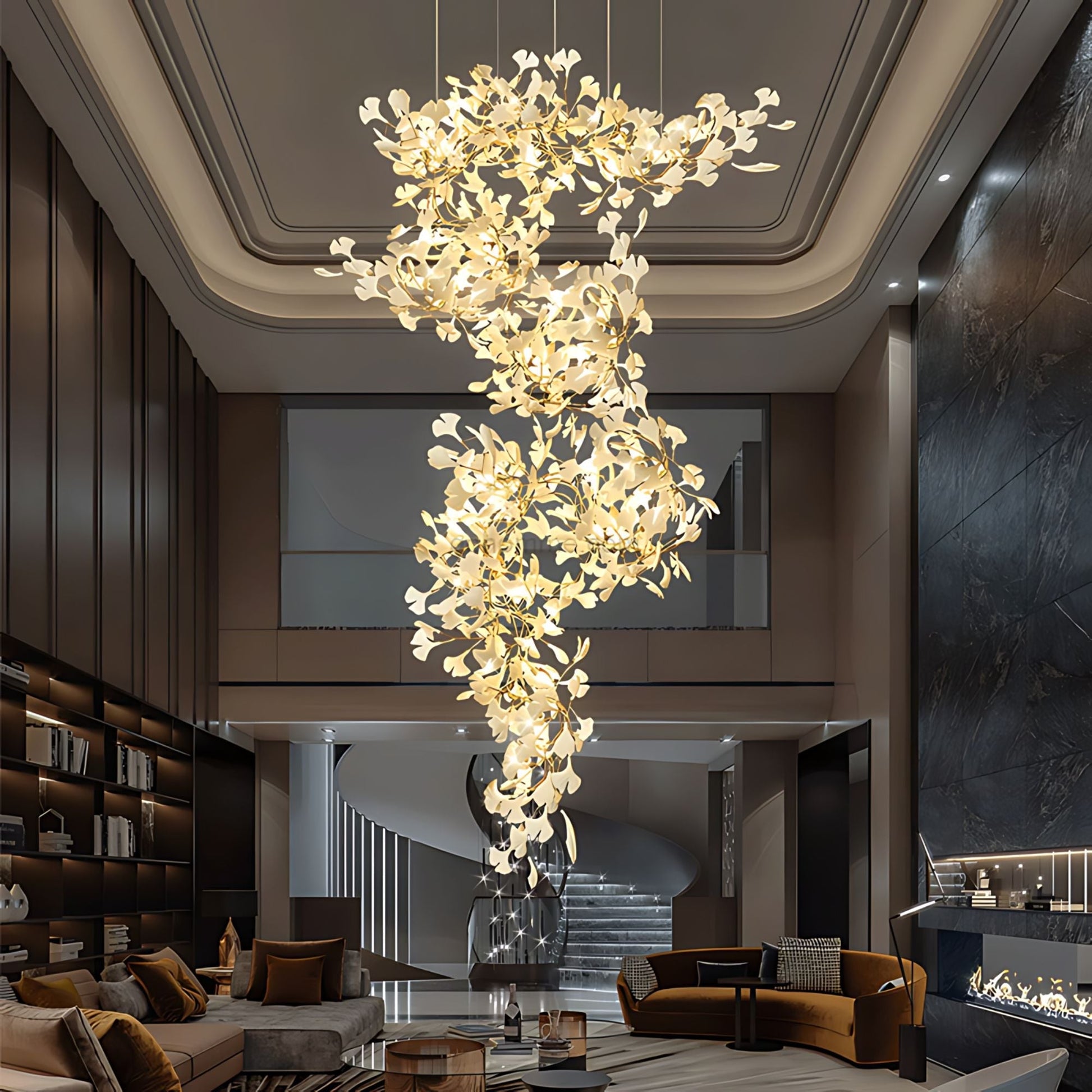 Introducing the Gingko Grand, a masterpiece blending nature's elegance with modern lighting design. This exquisite chandelier exemplifies the perfect harmony of artistry and functionality, infusing the enchanting beauty of a blossoming tree into your living space.