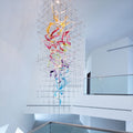 Unleash your inner artist and transform your space with the Luxury Art Glass Ribbons Chandelier - a true masterpiece of design. This exquisite chandelier is a captivating blend of stunning colors and modern metal caging, making it the perfect statement piece for any grand entryway or staircase.