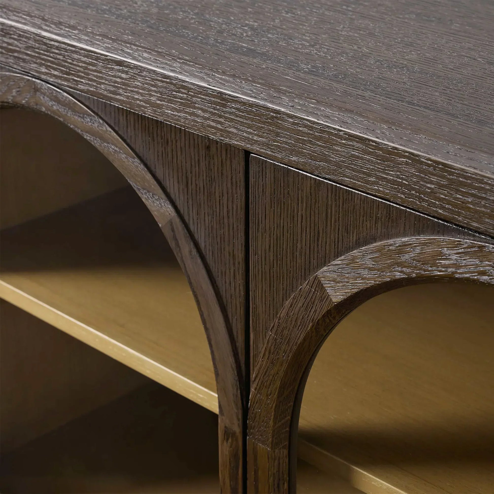 Where soft curves blend seamlessly with the natural beauty of oak, the artisan-crafted Hattie Collection stands ready. With spacious shelves, it offers ample room to showcase your cherished treasures and daily essentials.