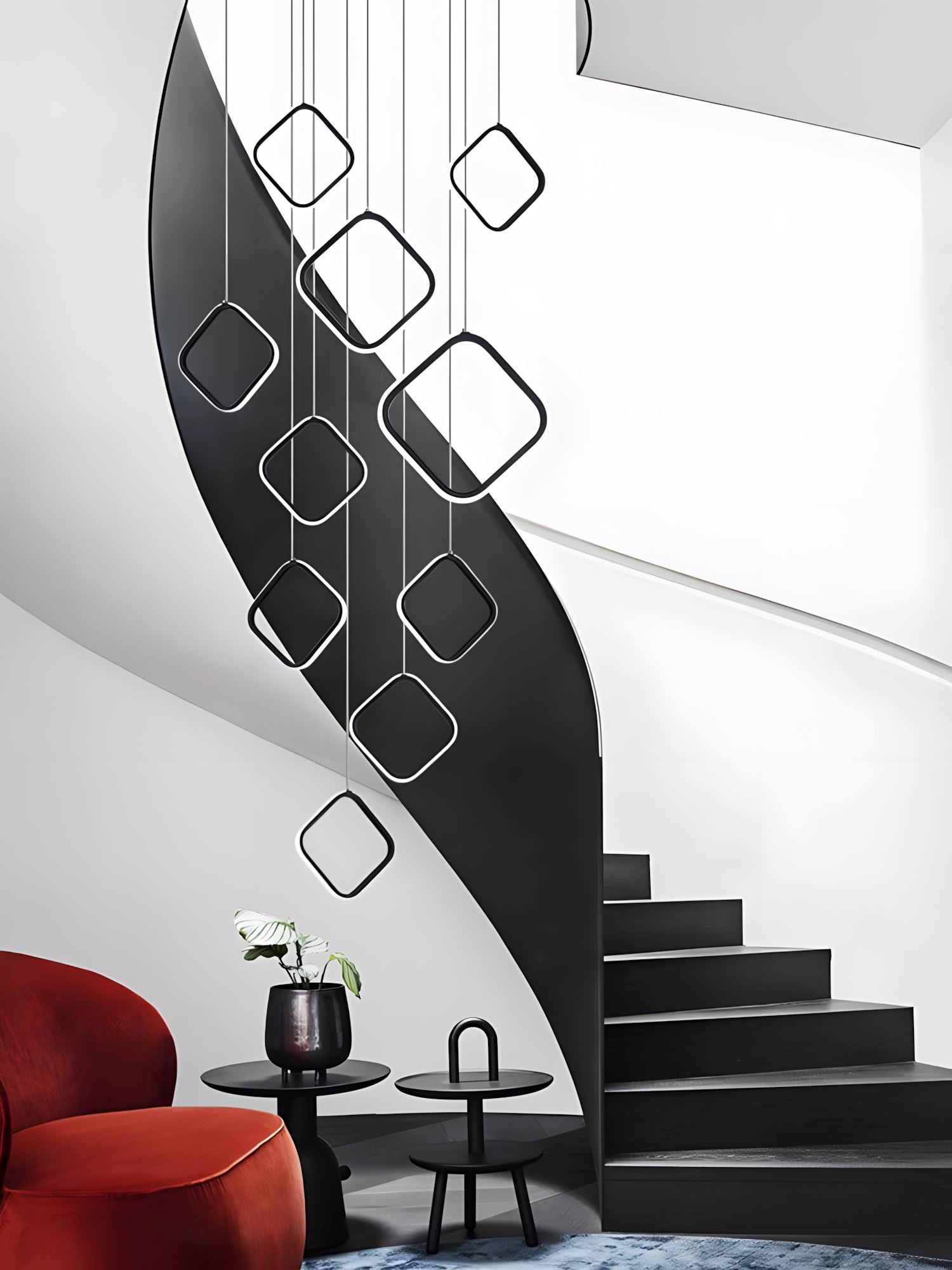 Meet Hedron, a refined and modern masterpiece that captures the essence of simple yet compelling design. Hanging gracefully in an asymmetrical fashion from a thin wire, each element is meticulously arranged for optimal reach and balance. The centerpiece is a robust aluminum ring, casting a vibrant array of finishes and colors to illuminate your space. Elevate your home with this contemporary marvel, introducing both elegance and a playful touch to your living area.