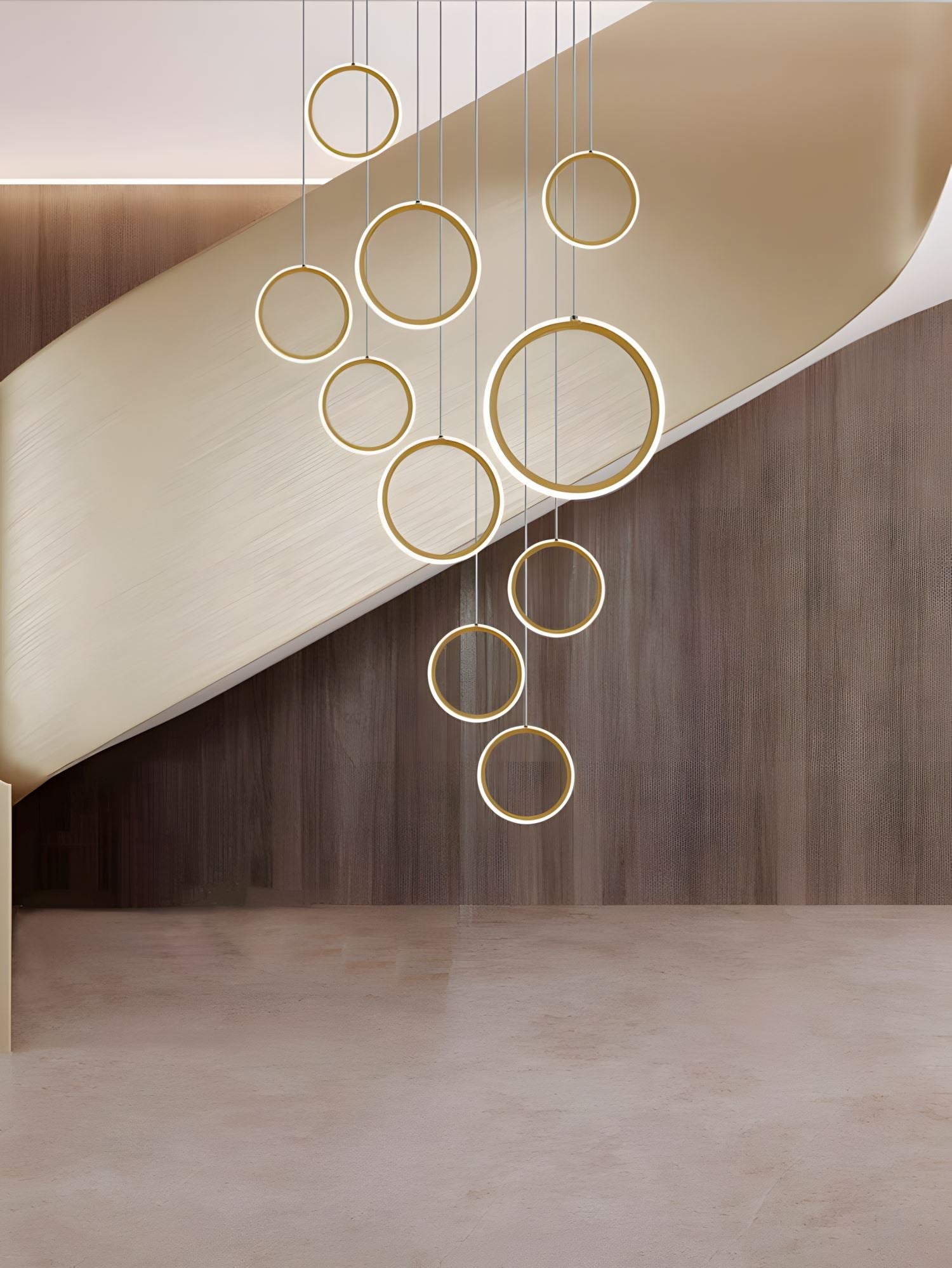 The length of the steel slings depends on the chandelier size and is adjustable. If you require longer wires, this can be done at no additional cost. Just use our order notes during checkout or drop us a message with your order number after placing the order.