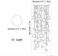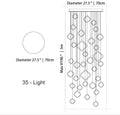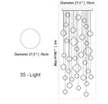 - 35 Lights: 27.5" / 70cm D x 196" / 500cm H
