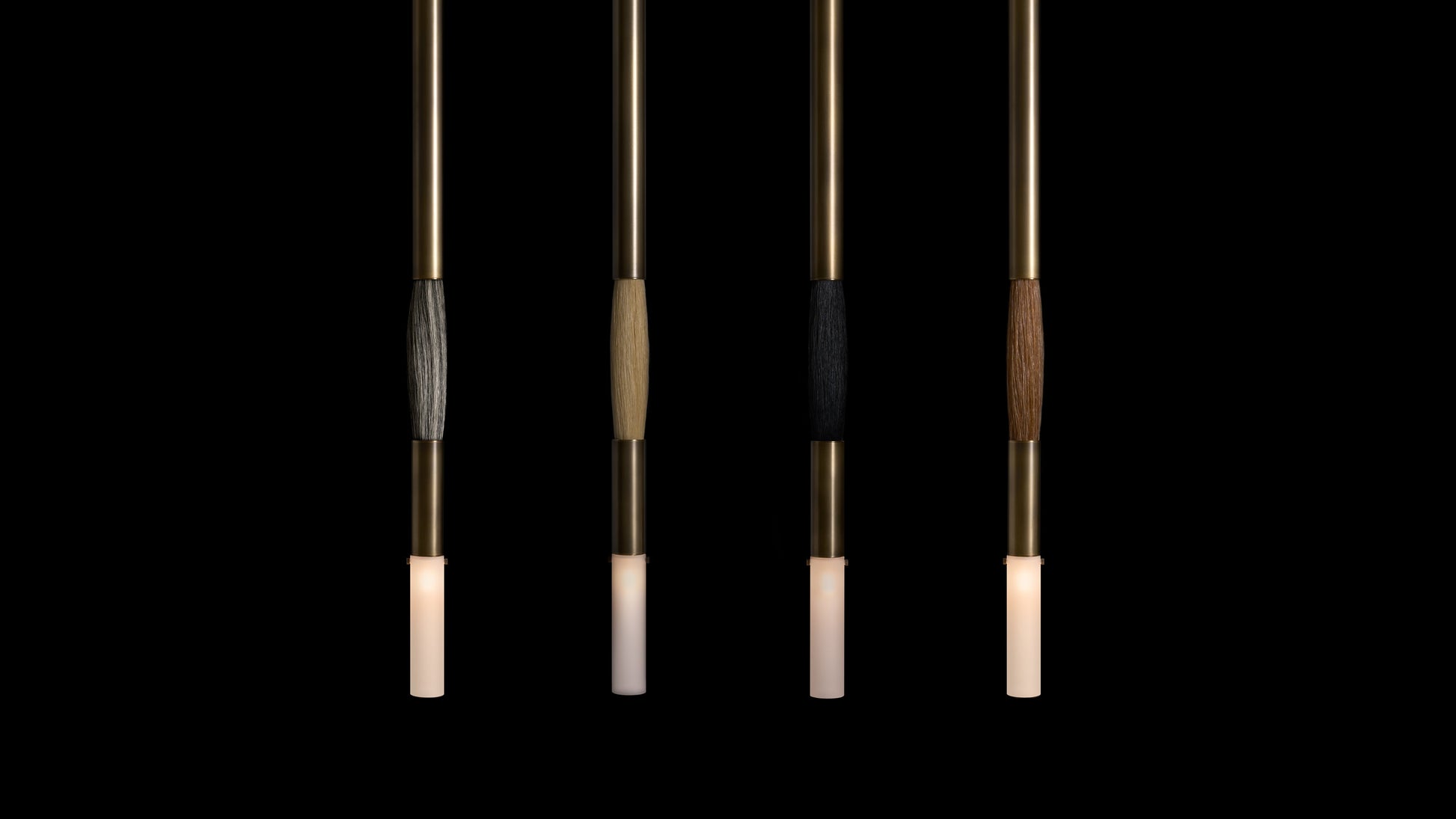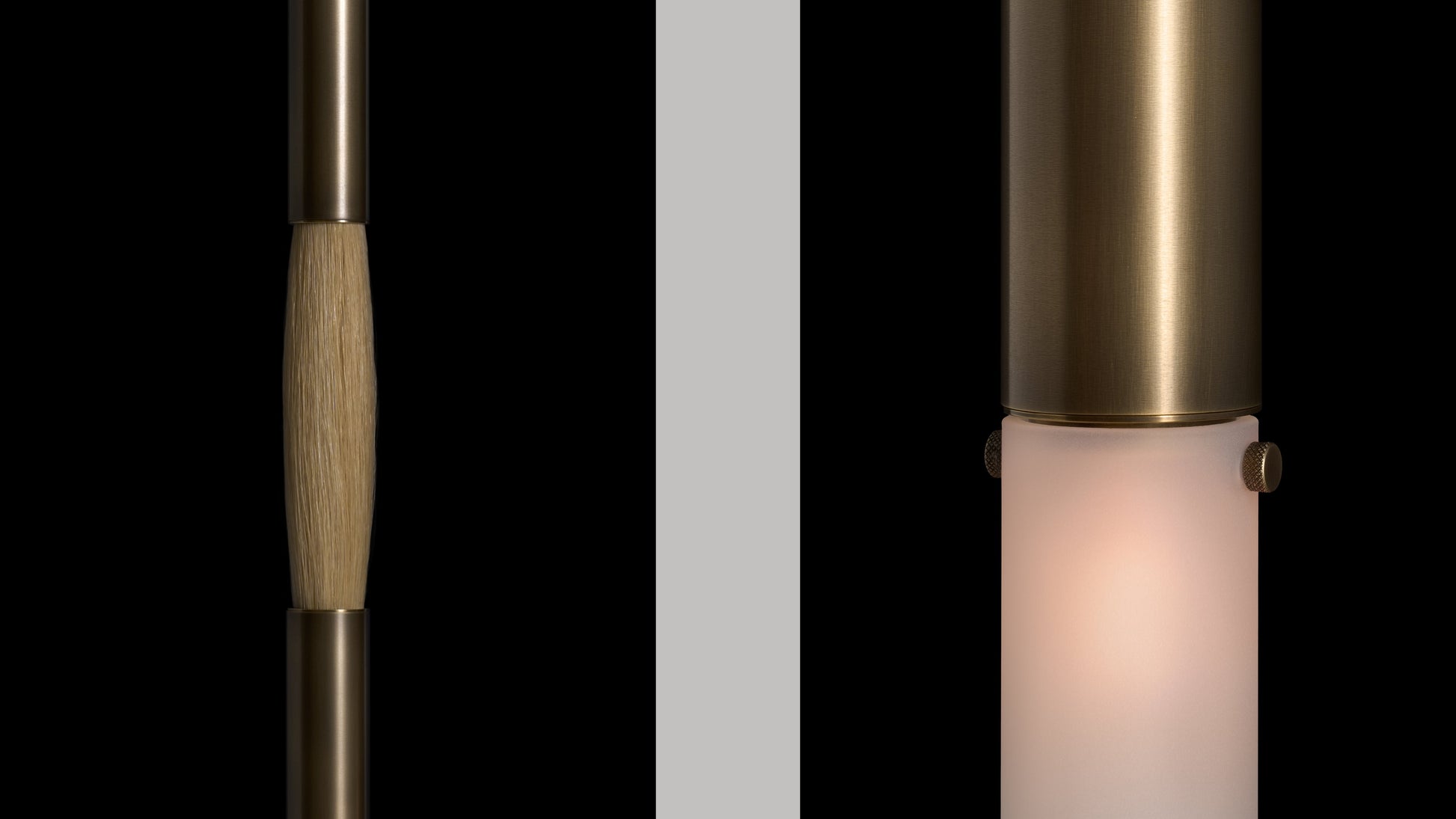 This Horsehair Pendant combines horsehair, brass, and etched glass for a unique design and exquisite materials. The warp of the horsehair combines with the brass body of the lamp to create a visual effect that is both sturdy and elegant.