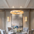Karen Alabaster Ring Chandelier features natural alabaster stone, prized for its serene beauty and grounding presence. Renowned for evoking clarity and calm, alabaster casts a soft, ambient glow with warm, earthy undertones. Its minimalist, frameless ring design highlights the organic elegance of one of nature’s most timeless materials.