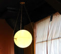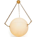 Executed in the highest quality European alabaster sphere mounted on metal chain in choice of a number of metal finishes, this ultra refined design adds a dramatic sculptural element and focal point of incomparable beauty. Available in 2 sizes.