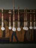 Expertly crafted with a marble-inspired design, the Millie Chandelier brings a touch of ancient elegance to any space. Its intricate marble beadwork, secured by fluted pins, adds a timeless charm to the leather-bound brass structure. Elevate your decor with this stunning piece.
