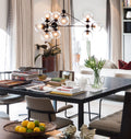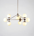 A modern statement piece, the Modo Chandelier features a sleek 3-sided frame with 10 elegantly arranged globes, offering a perfect blend of bold design and soft, ambient lighting. Ideal for contemporary spaces.