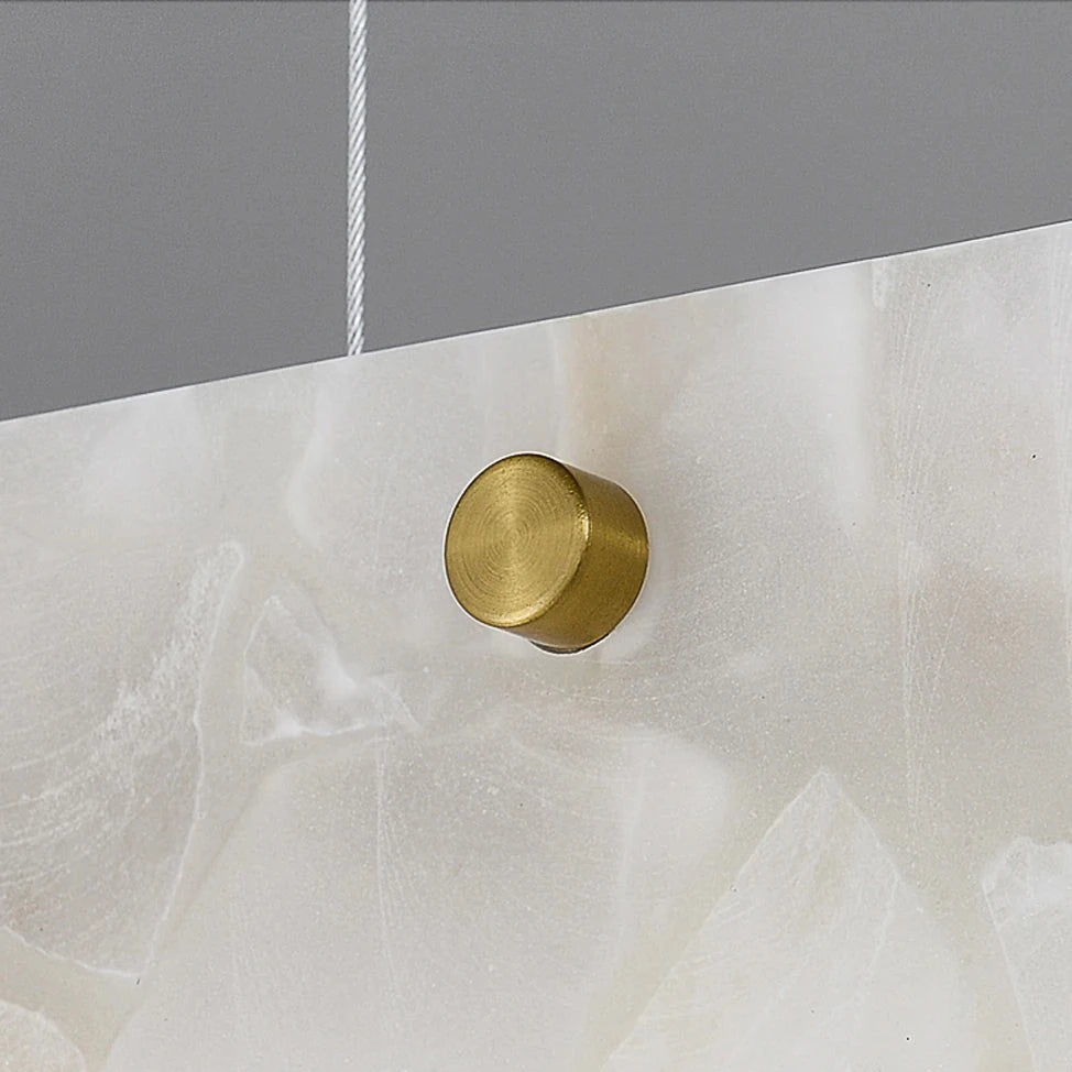 This Natural Marble Kitchen Island Chandelier adds a touch of sophistication and modern style to any kitchen. The natural marble and stainless steel construction is designed for long-lasting durability and showcases an elegant look. Perfect for updating your kitchen décor.