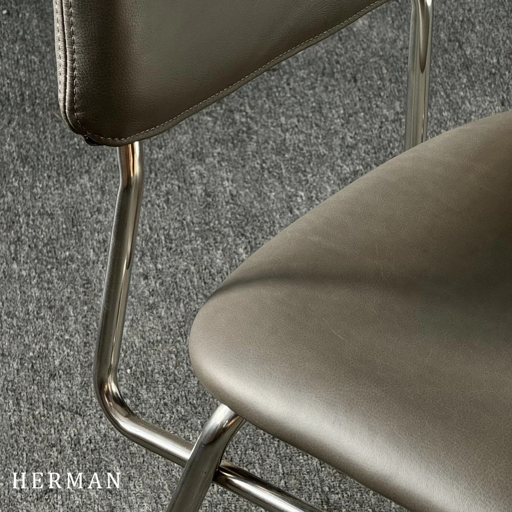 The NobleChair showcases a minimalist design with a refined aesthetic, inspired by the harmony of simplicity and luxury. Its combination of aniline leather and 304 stainless steel brings a contemporary and durable touch, while the moderate padding ensures comfort without compromising on the sleek form. The chair’s clean, elegant lines make it easy to integrate into various interior styles, while its lightweight structure allows for effortless mobility and flexibility in different spaces.