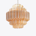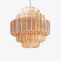 The stunning 1970s-inspired glass Palermo Chandelier features a chrome-plated iron frame, with hexagonal glass tubes elegantly suspended at each level in a diamond formation.