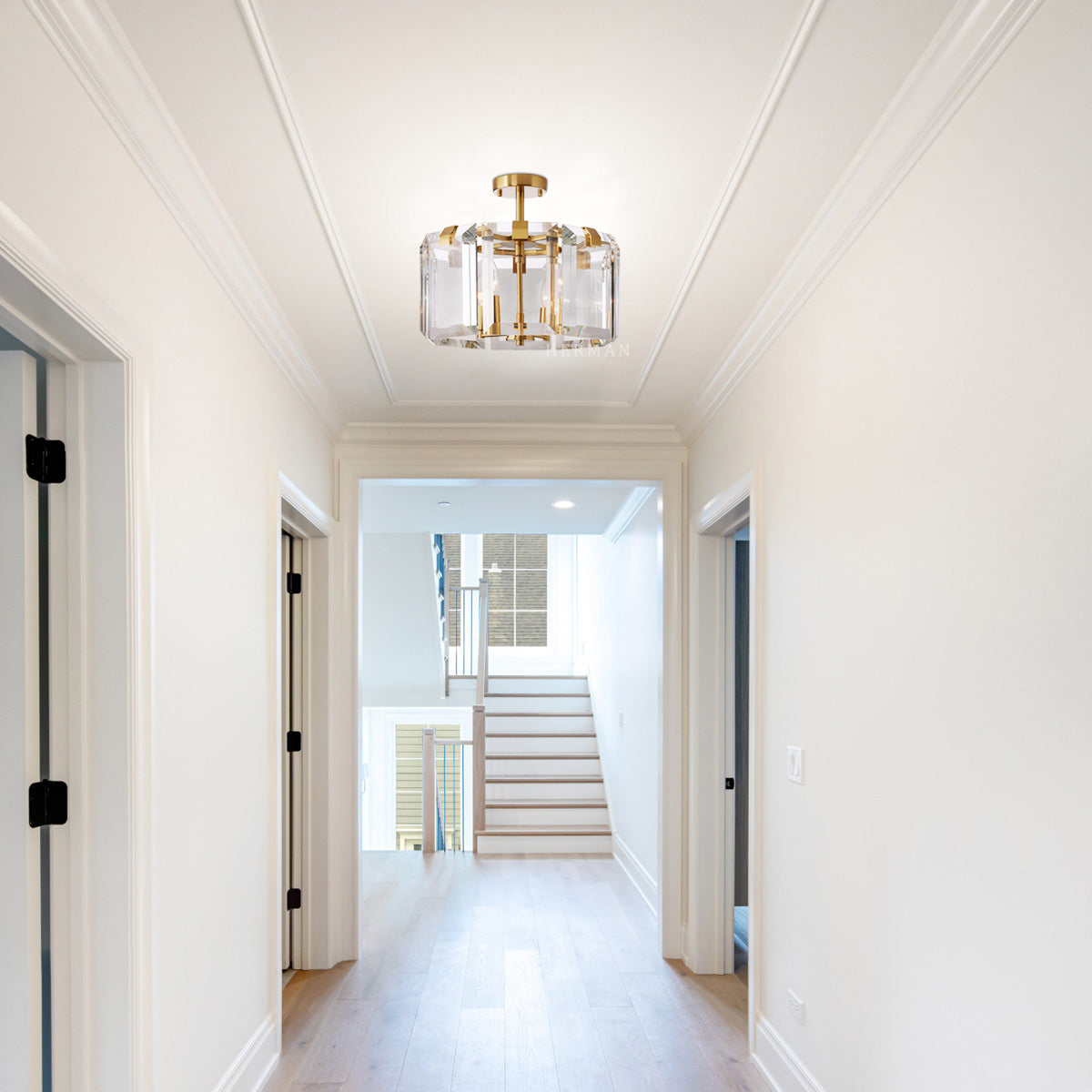 Our stunning Salomon collection artfully juxtaposes clear crystals with sleek black finishes or brass-plated iron to create artful lighting in bathrooms, living rooms, and other spaces.