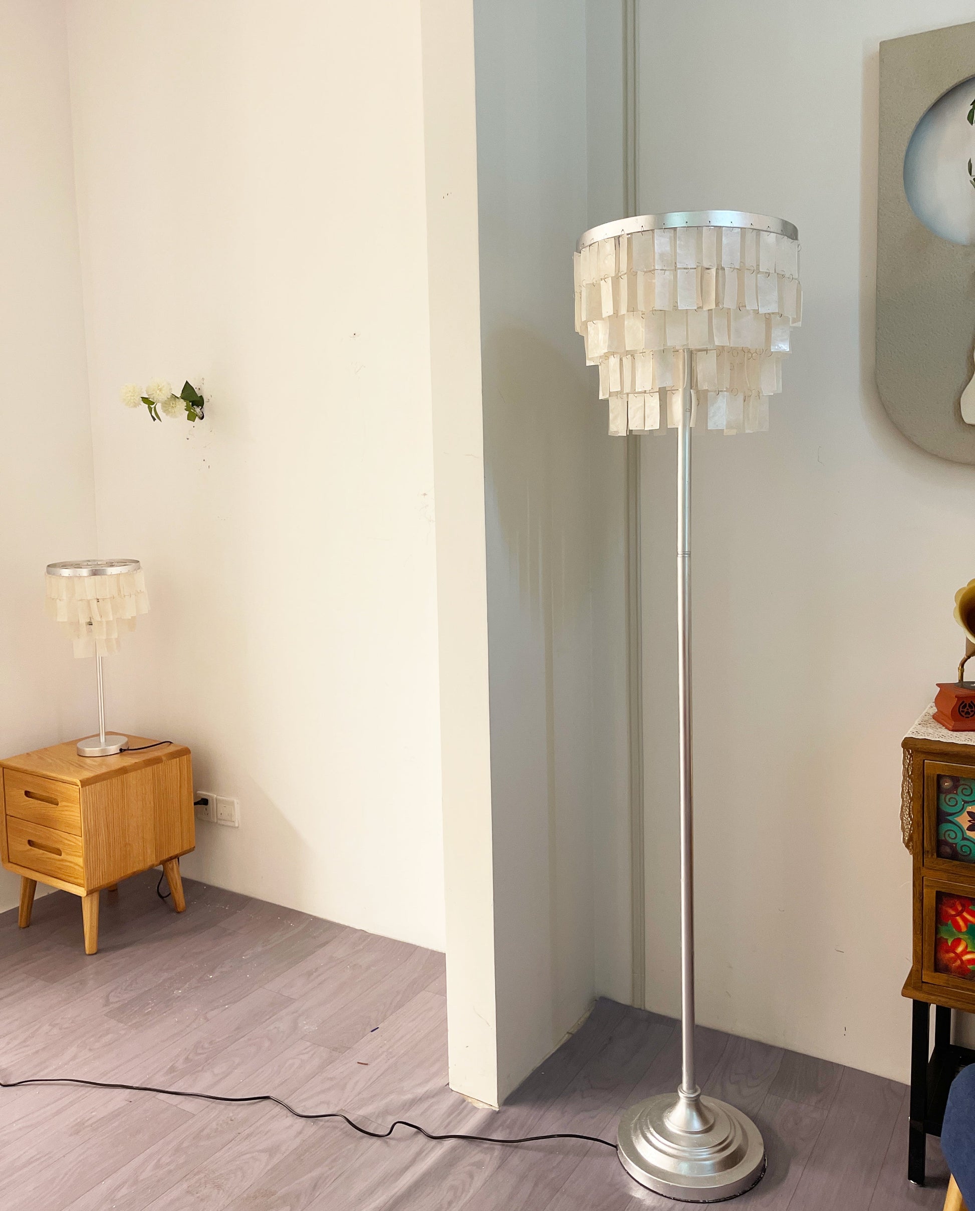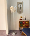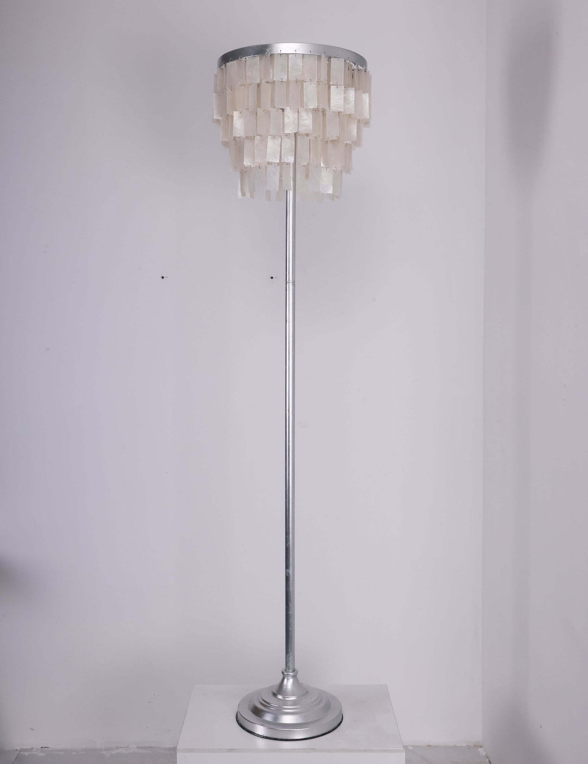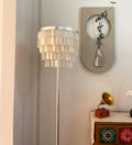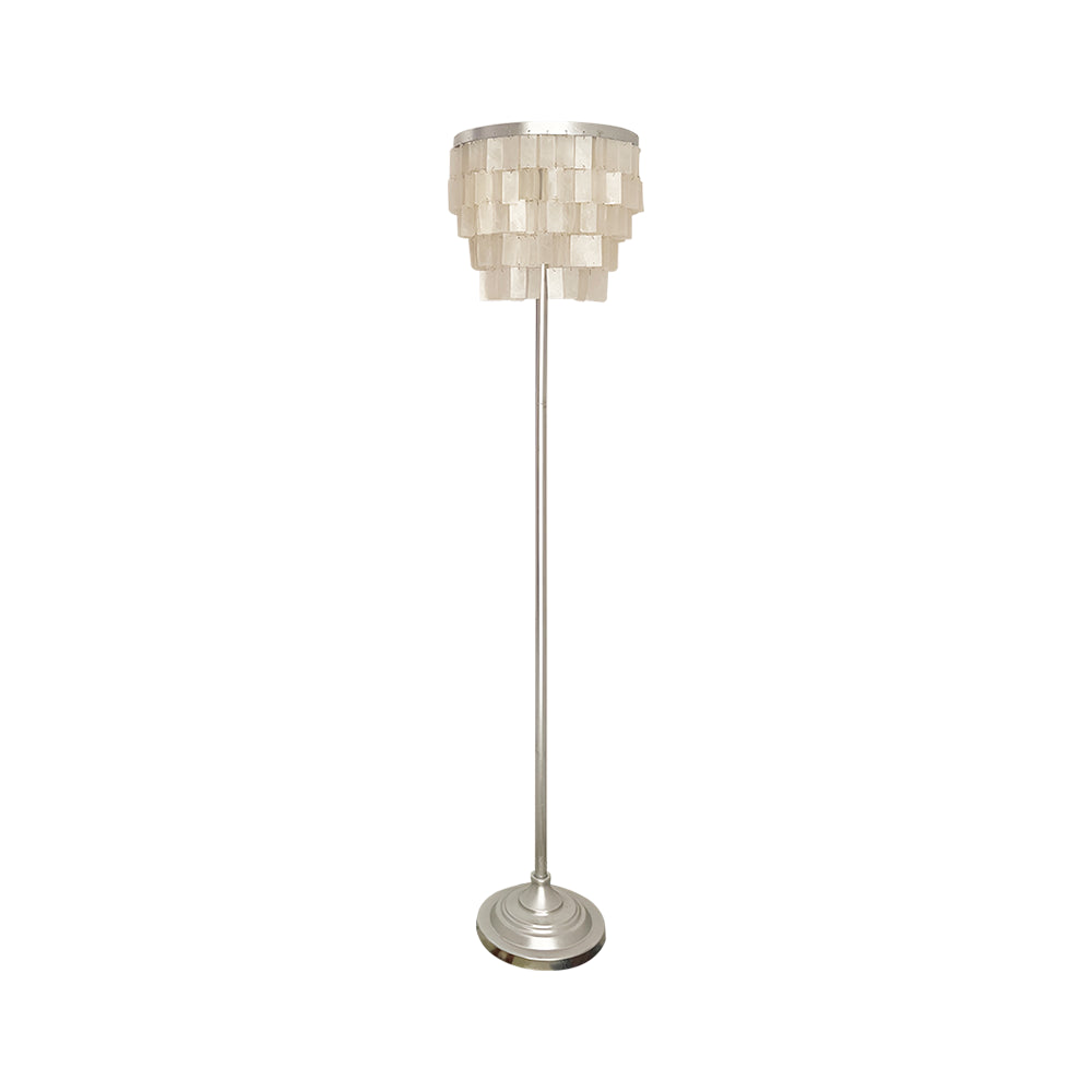 This Skye Tiered Floor Lamp, Illuminate your home with the stunning glow of the Skye Tiered Floor Lamp. Rectangular shell tiles are suspended in layers, and each shell is translucent to allow light to filter through. Our Floor Lamp showcases the shells to stunning effect, casting an ambient, pearlescent glow.