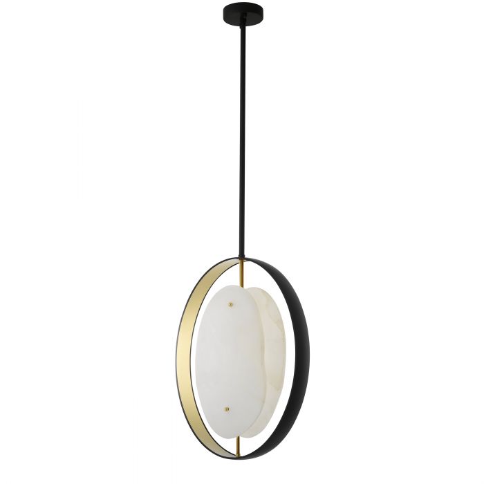 Simple yet elegant in design, Chandelier Trissoni is a perfect pendant lamp for modern and industrial interiors. The gunmetal finish fixture has a ring with a gold-coloured inside to reflect the light. Two free-form plates of alabaster keep the light bulb out of sight.