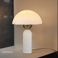 Illuminate your space with the sleek and elegant G9 Alabaster white marble table lamp.With 15W of power, it provides just the right amount of light for reading or creating a cozy ambiance.The 12" diameter makes it a perfect fit for any room, adding a touch of sophistication and style.